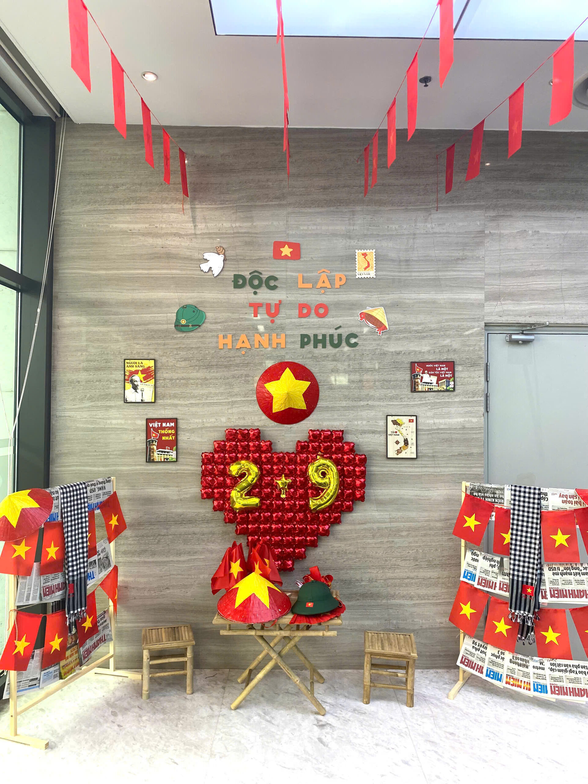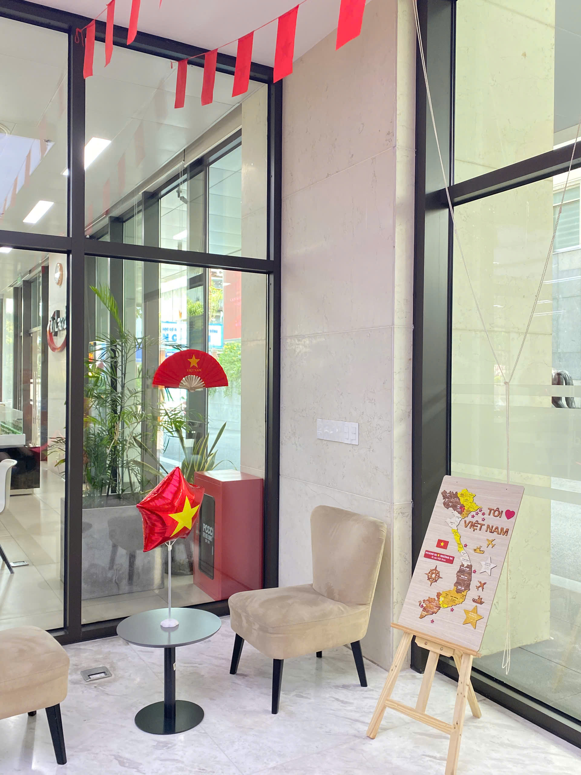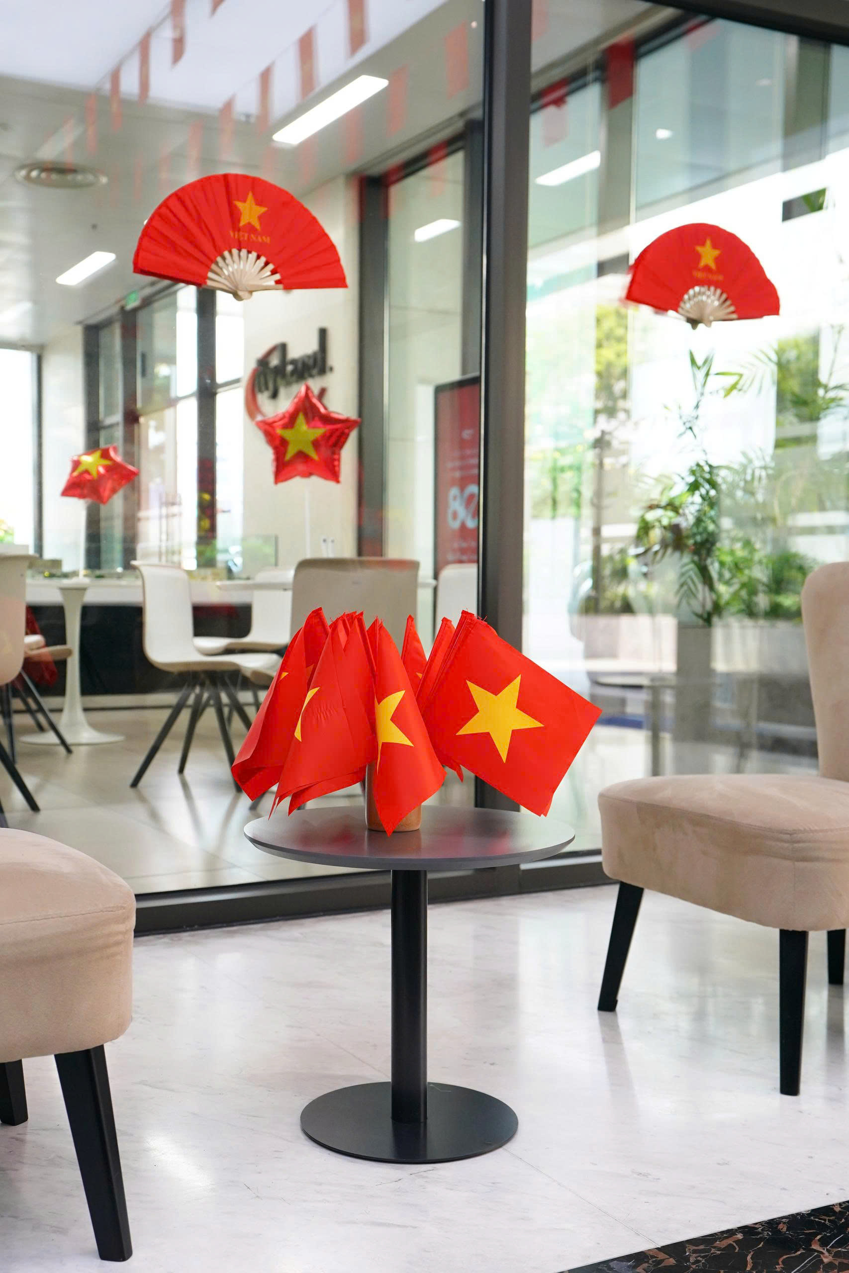 In harmony with the nation’s jubilant heartbeat, the staff of CityLand Group recreated that sacred atmosphere right within their workplace. The grand lobby, adorned in the resplendent red and gold of the national flag, radiated a vibrant spirit of Vietnam, forming a living tableau brimming with energy and pride.