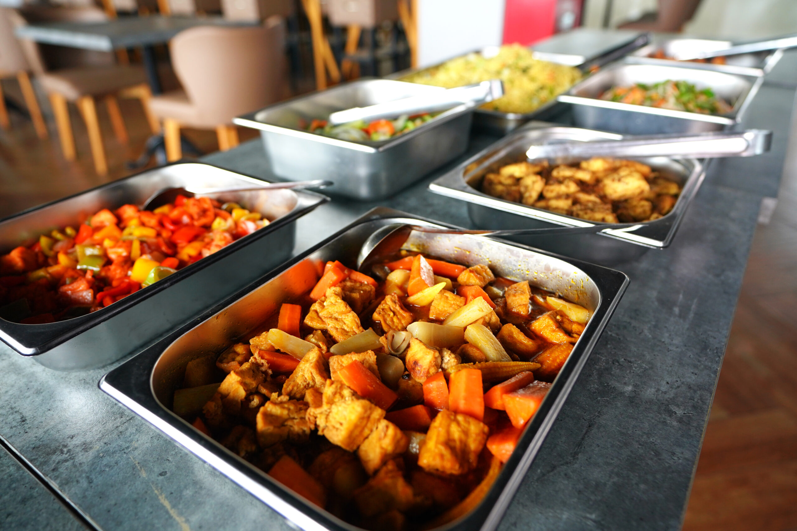 - A diverse food counter with daily options, including fresh fruit to round off your meal.