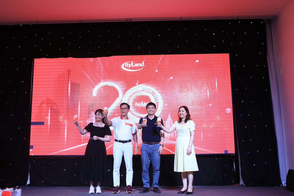 Tạo nên bầu không khí vô cùng sôi nổi của bữa tiệc, chương trình còn có các tiết mục văn nghệ được thể hiện bởi chính các thành viên đa tài của CityLand Group và nhiều màn hỏi đáp ấn tượng được MC thú vị đến từ công ty tour Travel One dẫn dắt vui nhộn cũng đã góp phần tăng sự hấp dẫn cho đêm tiệc. Đặc biệt hơn cả là clip ngắn về những mảnh ghép chỉ có ở CityLand group đã thực sự lắng đọng. Bởi mỗi mảnh ghép ở CityLand Group là một màu sắc, một cá tính và chúng ta đang cùng nhau tô điểm thêm thành công cho hành trình 20 năm thanh xuân tự hào của CityLand.