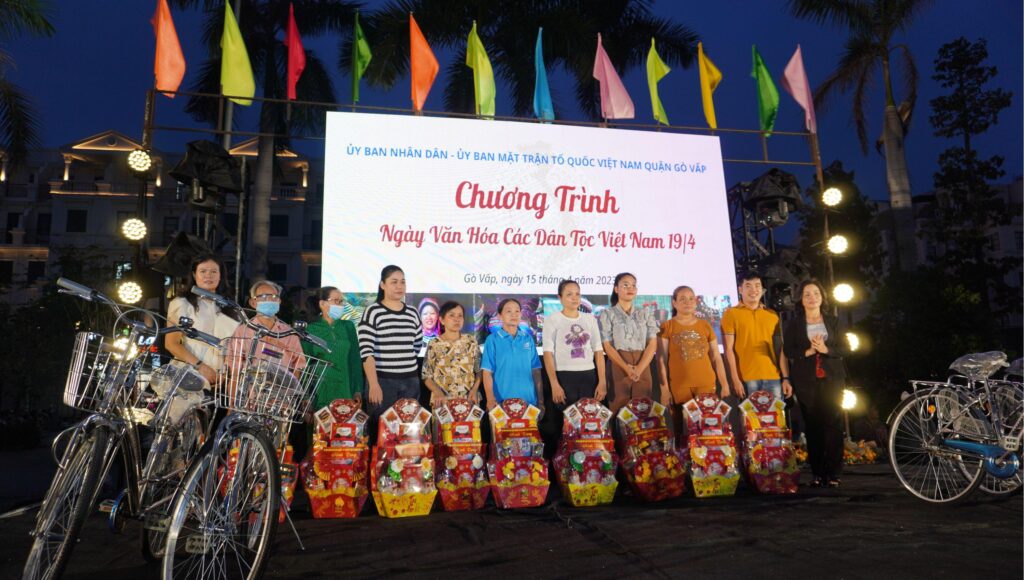 Chiều 15/4, UBND quận Gò Vấp phối hợp với Ủy ban MTTQ Việt Nam quận, các đoàn thể quận, UBND 16 phường và các đơn vị Cụm thi đua III Ban Dân tộc TPHCM (gồm các quận Gò Vấp, Bình Tân, Tân phú, Quận 7 và Quận 12) tổ chức các hoạt động kỷ niệm “Ngày văn hóa các dân tộc Việt Nam 19/4” năm 2023 tại quảng trường Hòa Bình (Khu dân cư CityLand Park Hills). Tham dự có các đồng chí: Lâm Thị Ngọc Hoa, Phó Chủ tịch Hội Liên hiệp Phụ nữ TPHCM; Trần Thị Thanh Nhàn, Ủy viên Ban Thường vụ, Trưởng Ban Dân vận Quận ủy; Đào Thị My Thư, Quận ủy viên, Phó Chủ tịch UBND quận; Trần Thạnh Hưng, Phó Chủ tịch Ủy ban MTTQ Việt Nam quận; đại diện Ban Dân tộc TPHCM và lãnh đạo các đơn vị trong Cụm thi đua III Ban Dân tộc TPHCM … CITYLAND GROUP vinh dự là đơn vị tài trợ địa điểm cho sự kiện ý nghĩa này.