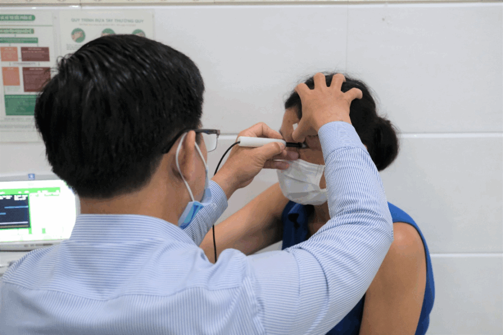 Bác sĩ Bệnh viện Mắt Tây Nam thăm khám cho bệnh nhân