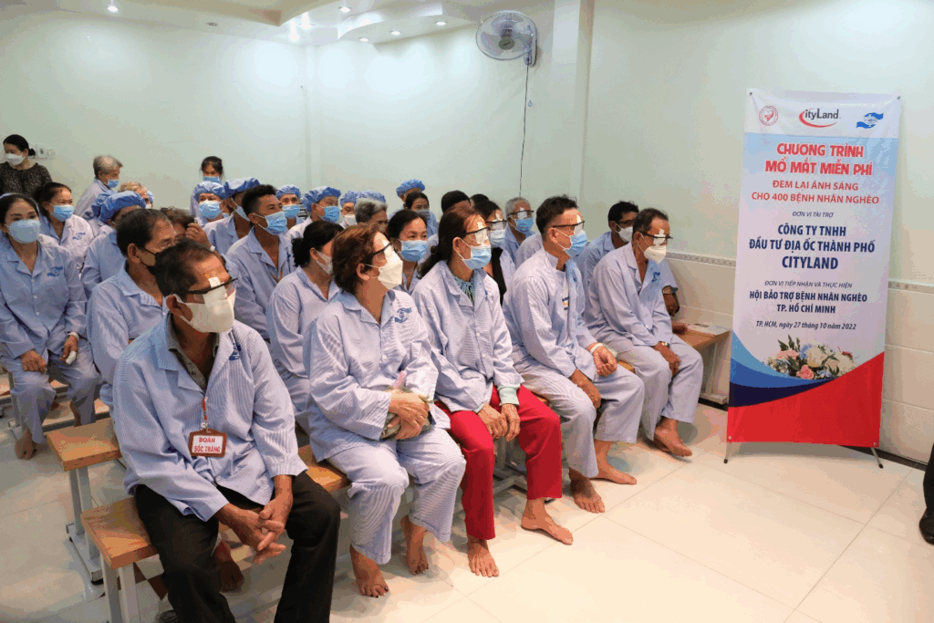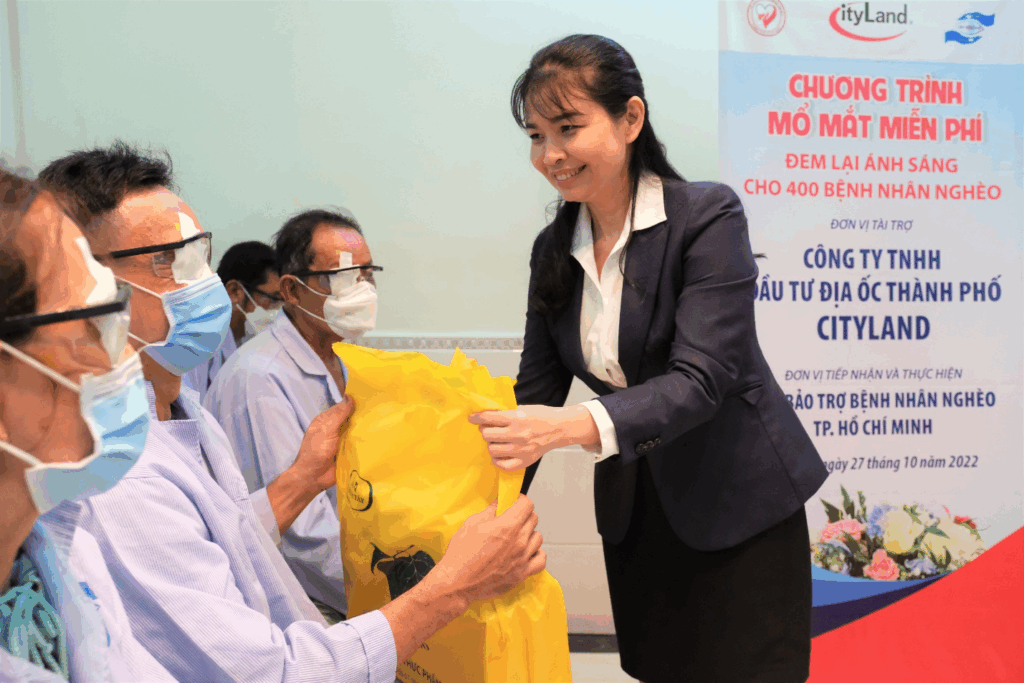 Nhằm cải thiện chất lượng cuộc sống cho cộng đồng, giảm bớt tỉ lệ mù lòa và gánh nặng cho ngành y tế, Cityland đã tài trợ và phối hợp thực hiện cùng Hội Bảo trợ bệnh nhân nghèo TP.HCM tiến hành phẫu thuật mắt miễn phí cho 400 bệnh nhân nghèo bị đục thủy tinh thể tại TP.HCM và các tỉnh lân cận tại Bệnh viện Mắt Tây Nam. Bà con bệnh nhân phần lớn là ở thành phố Hồ Chí Minh và từ các tỉnh lân cận thành phố như: Tây Ninh, Đồng Nai và Bình Dương đã tập trung về Bệnh viện Mắt Tây Nam từ sớm để được khám, phẫu thuật mắt. 400 bệnh nhân được phẫu thuật trong thời gian 03 ngày từ ngày 27 đến ngày 29/10/2022.
